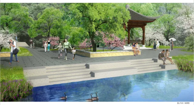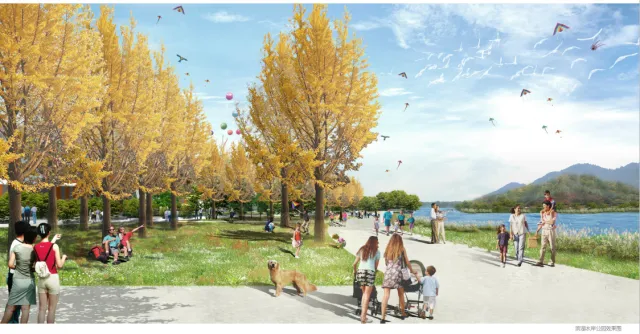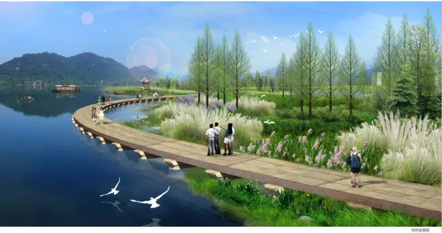 历史上的古湘湖,有大肚子,中间收窄如细腰,建有杨堤和跨湖桥,头上面是收缩的长颈,是标准的葫芦造型。湘湖三期就是要体现古湘湖的历史原貌。
